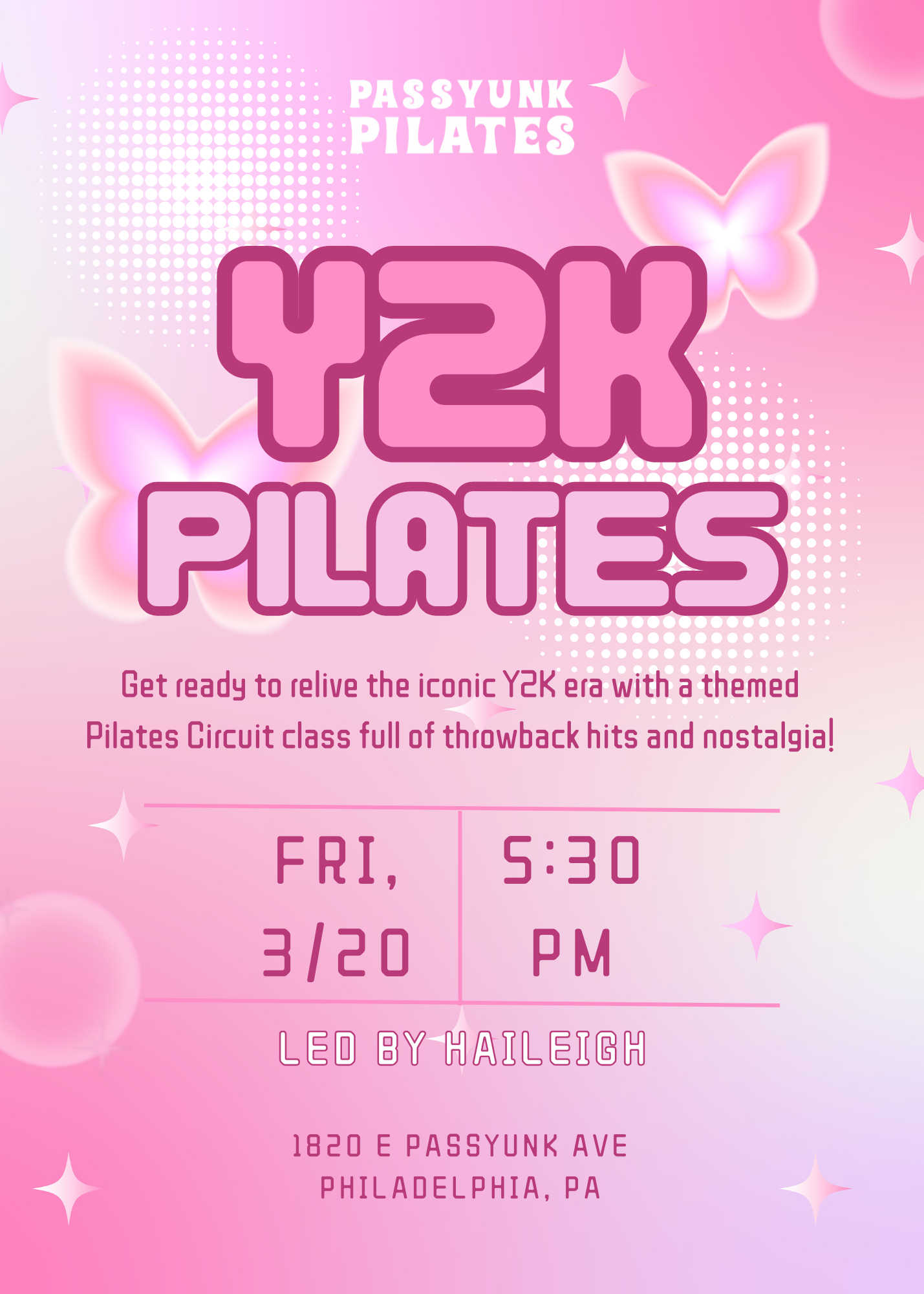 We’re taking it back to the Millennium with a Y2K theme on 3/20 at 530pm. We encourage you to dress up + have fun with it✌️Pilates a Circuit is a mat class designed to keep you moving and motivated, using a variety of props & calisthenics to target different muscle groups. You'll challenge your endurance, build strength, and have fun throughout the whole class!