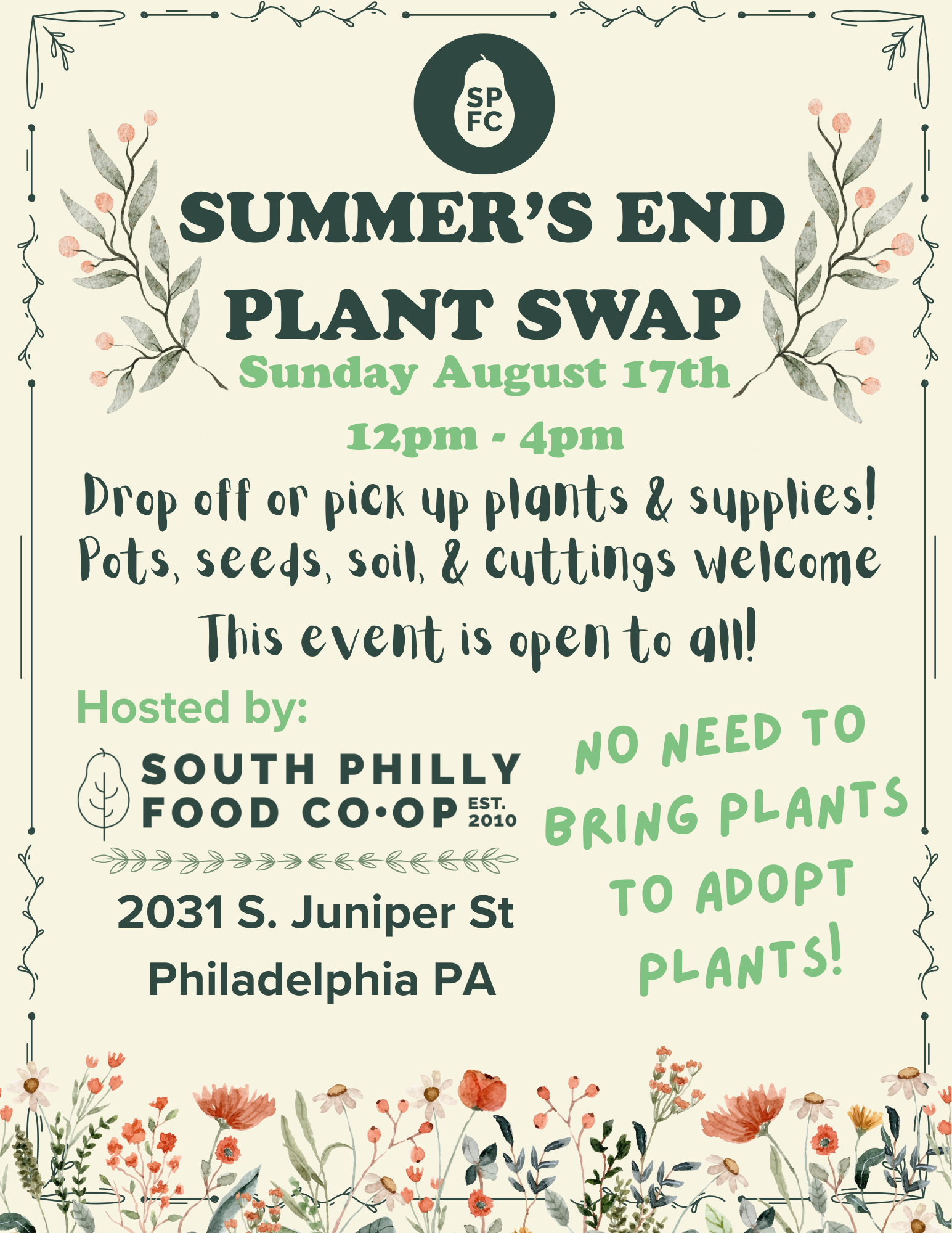 Swing by our pop-up plant swap outside the store on Sunday, August 17th from 12PM to 4PM, bring, take and trade plants, clipping and gardening supplies!